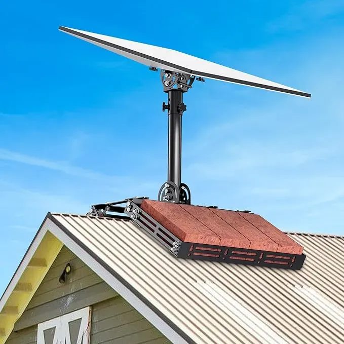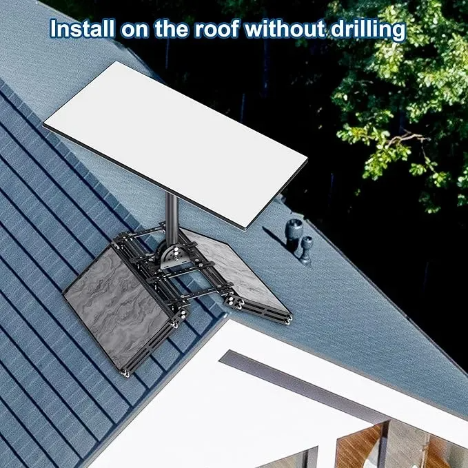 Монтажный комплект на крышу Starlink v3 и v4 с регулируемым углом наклона включает крепление и трубный адаптер, обеспечивая надежную и удобную установку спутниковой антенны